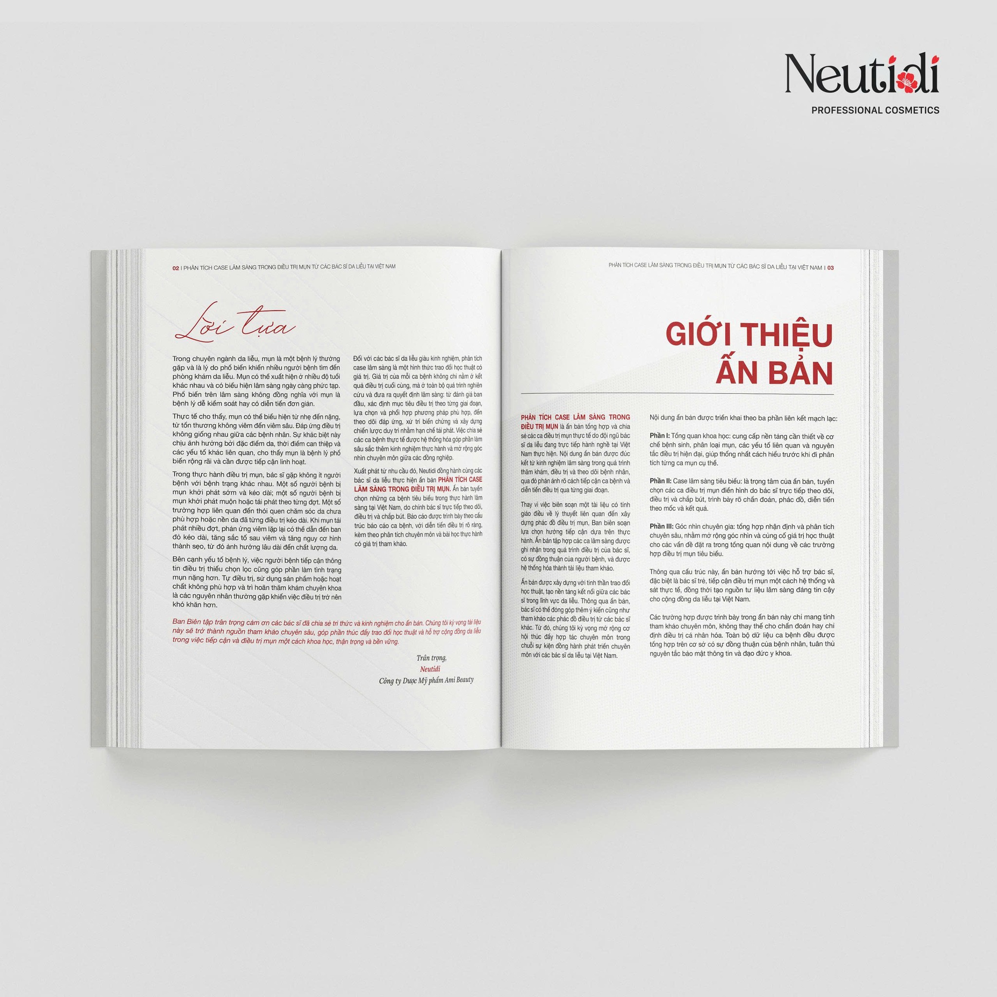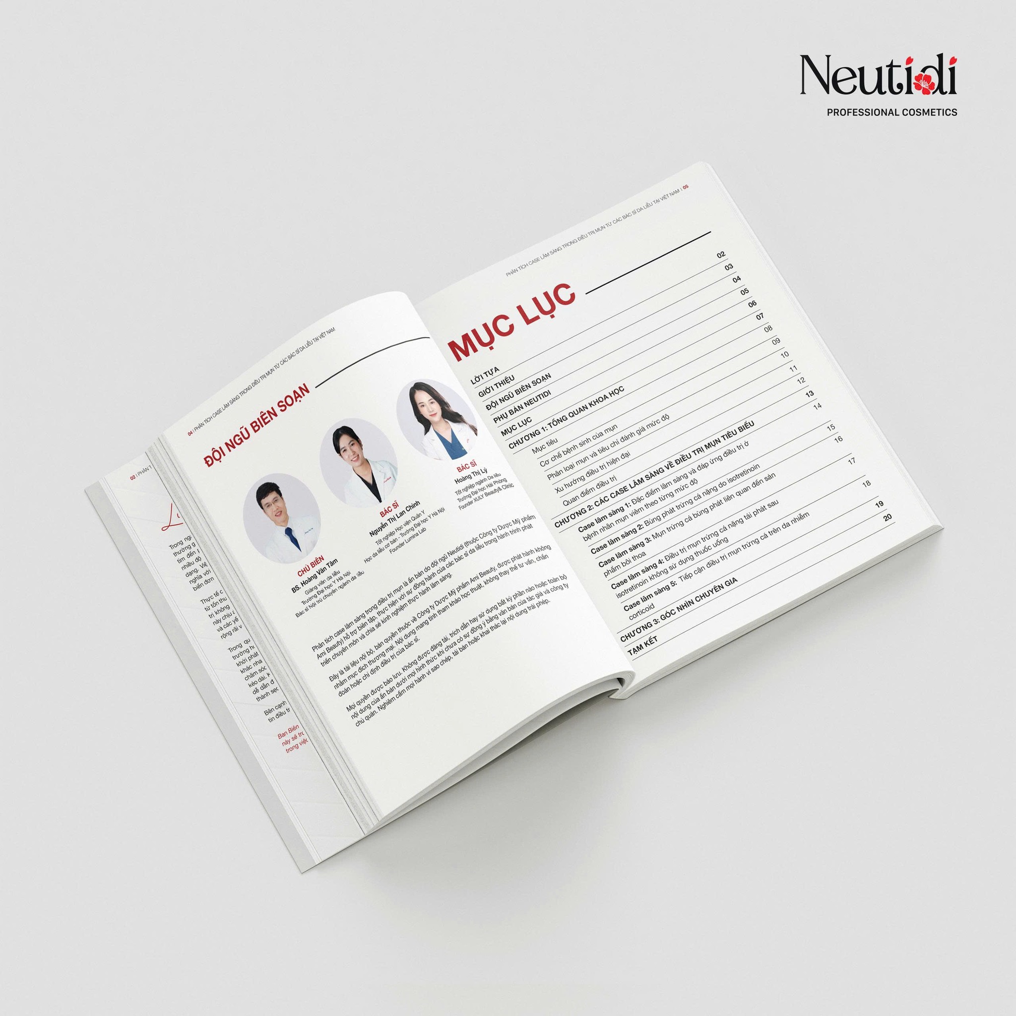 Trong khuôn khổ các hoạt động hỗ trợ chuyên môn, Neutidi trân trọng gửi đến Quý Bác sĩ ấn bản “Phân tích Case Lâm sàng trong Điều trị Mụn”. Đây là tài liệu được đội ngũ Neutidi (thuộc Công ty Dược Mỹ phẩm Ami Beauty) phối hợp biên tập, chủ biên bởi BS. Hoàng Văn Tâm, cùng hai cộng sự BS. Hoàng Thị Lý (Founder Xuly Beauty & Clinic) và BS. Nguyễn Thị Lan Chinh (Founder Lumina Lab).