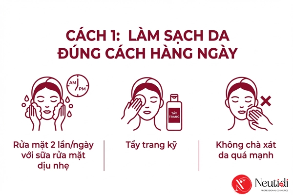 Cách 1: Làm sạch da đúng cách mỗi ngày
