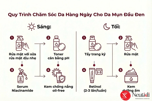 Chăm sóc da để mụn đầu đen không tái phát