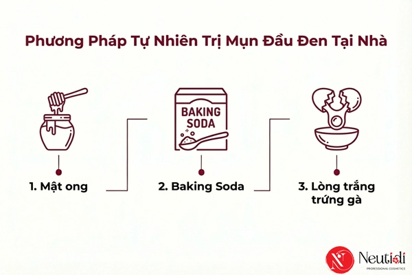 Nếu ưu tiên nguyên liệu tự nhiên, có thể thử các phương pháp sau, tuy nhiên hiệu quả thường chậm và chỉ phù hợp với mụn đầu đen mức độ nhẹ.