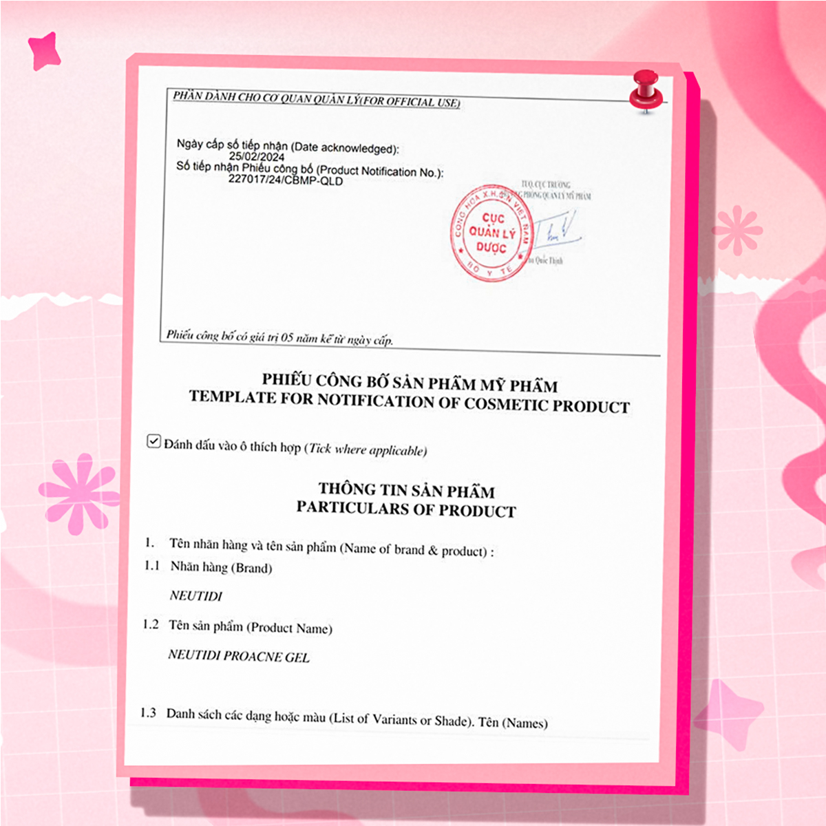Neutidi ProAcne Gel được phát triển dựa trên công thức độc quyền, kết hợp giữa hoạt chất khoa học tiên tiến và chiết xuất tự nhiên an toàn, mang đến giải pháp toàn diện cho làn da dầu mụn, nhạy cảm.